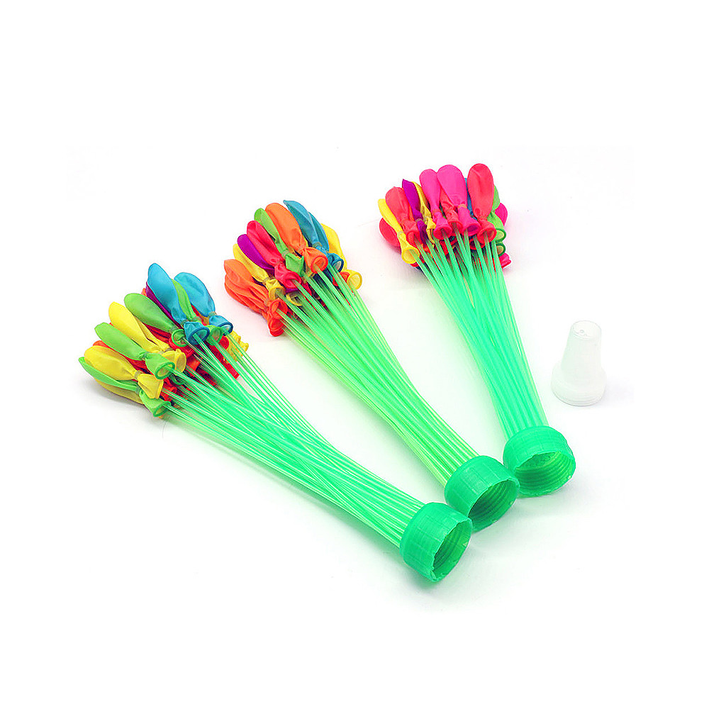 Set format din 111 baloane cu apa, prevazute cu sistem de auto sigilare in momentul detasarii. Setul se conecteaza la o sursa de apa, iar apa va umple simultan toate cele 111 baloane, intr-un timp record, aproximativ 1 minut. In momentul in care baloanele sunt pline cu apa, se pot detasa individual, moment in care se vor auto sigila. Nu va ramane decat sa incepeti o bataie pe cinste cu baloane cu apa, intr-o zi calduroasa.