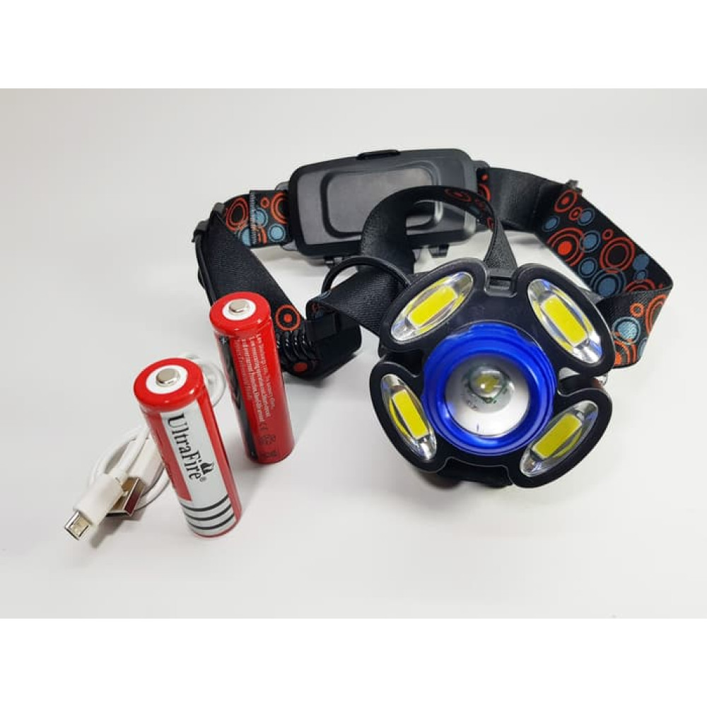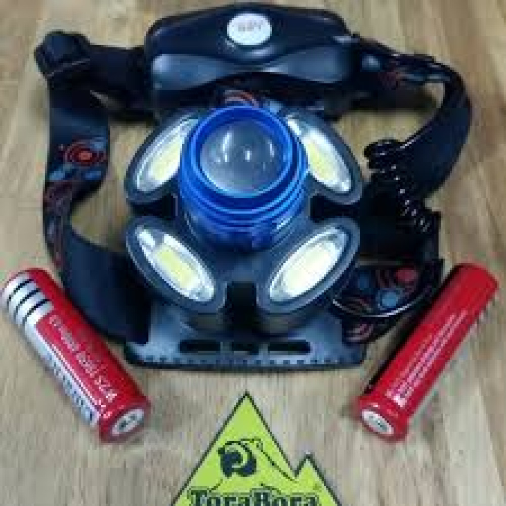 Lanterna frontala cu 4 led-uri, zoom si 2 acumulatori