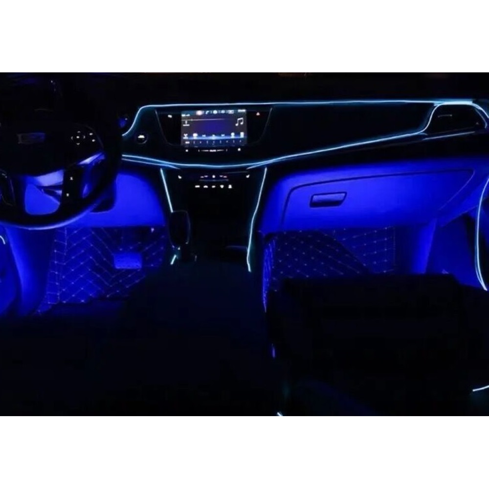Fir neon auto, electroluminiscent, 2 m, Albastru, cu droser si mufa bricheta, lumina ambientala
