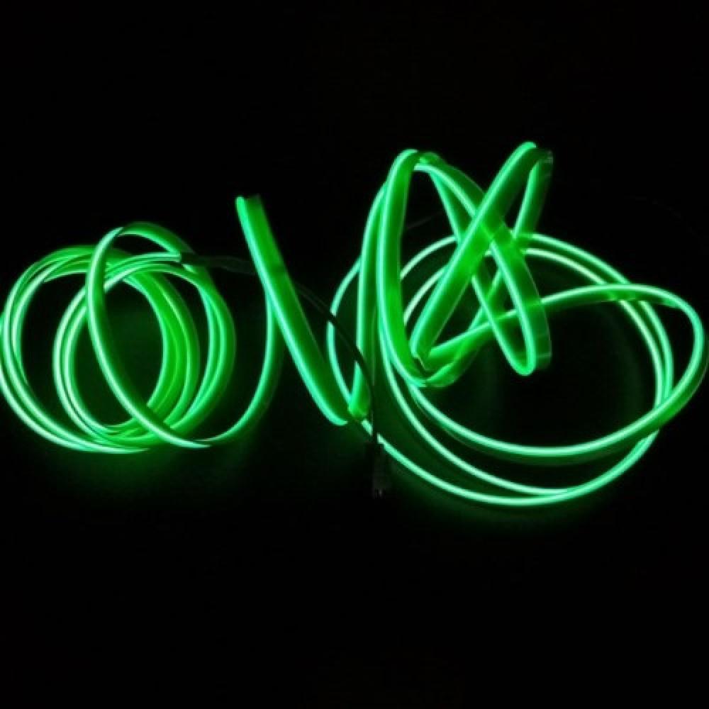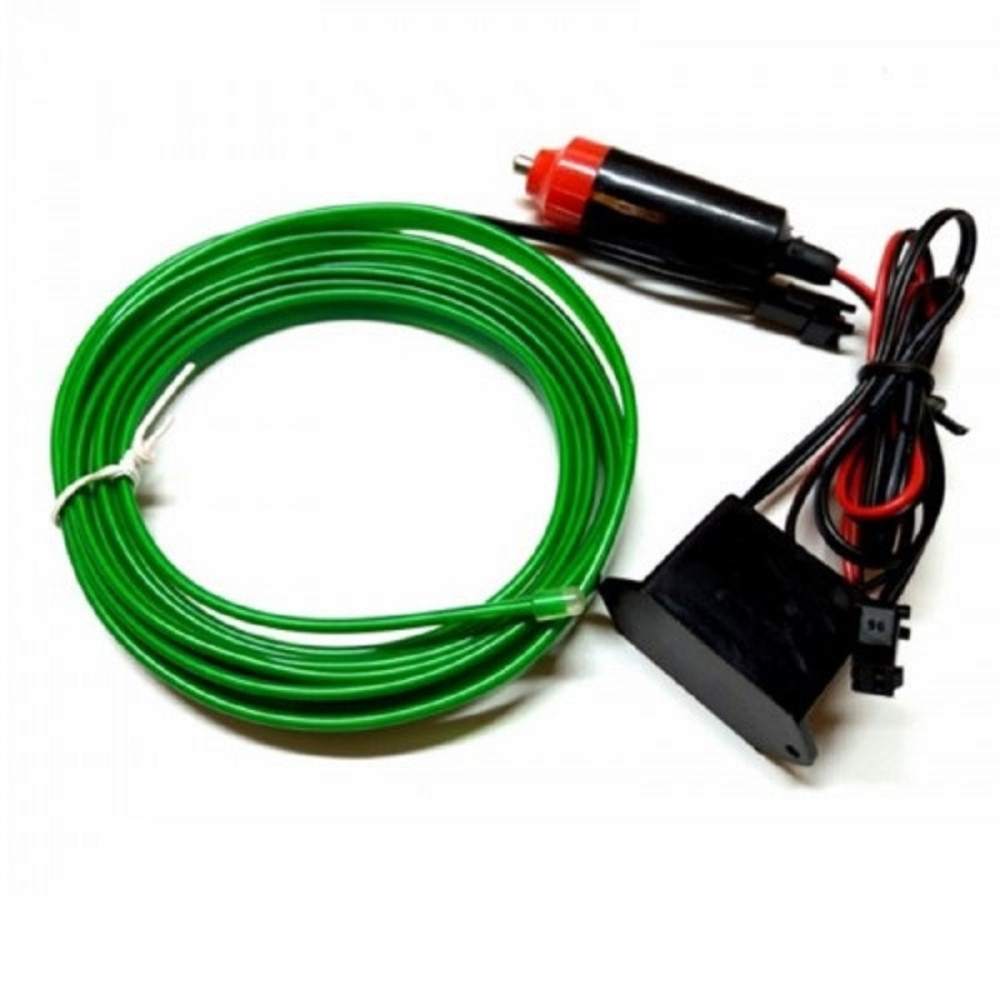 Fir neon auto electroluminiscent, 2m cu lumina Verde cu droser si mufa bricheta.