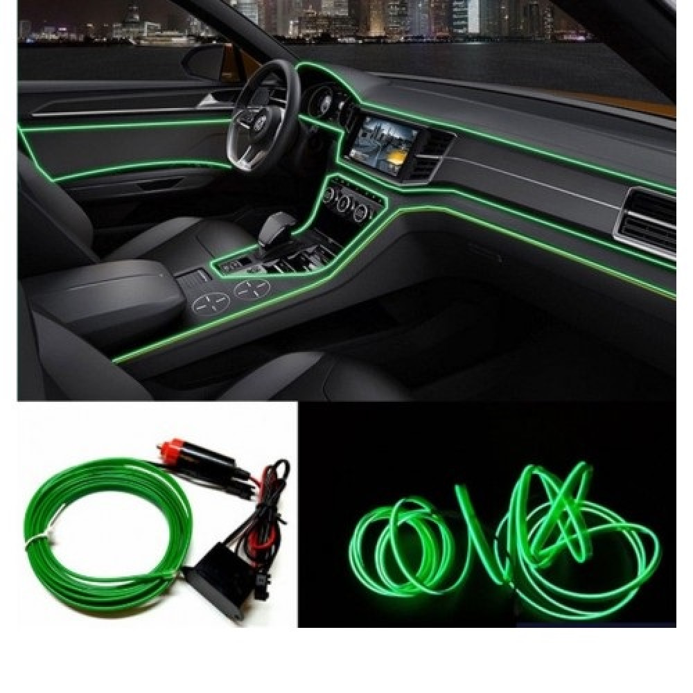Fir neon auto, electroluminiscent, 2 m, VERDE, cu droser si mufa bricheta, lumina ambientala