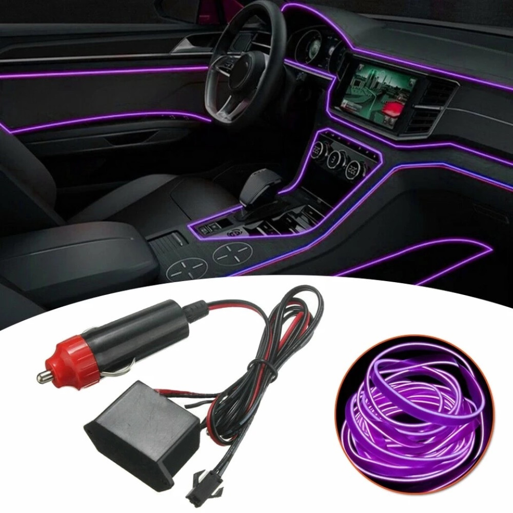 Fir neon auto, electroluminiscent, 2 m, MOV, cu droser si mufa bricheta, lumina ambientala
