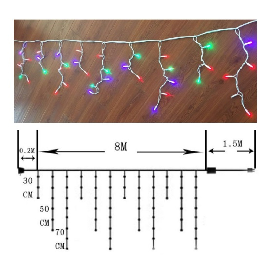 Instalatie de Craciun 8 m x 0.7 m Perdea Franjurata Rosie, 252 leduri, 9012R