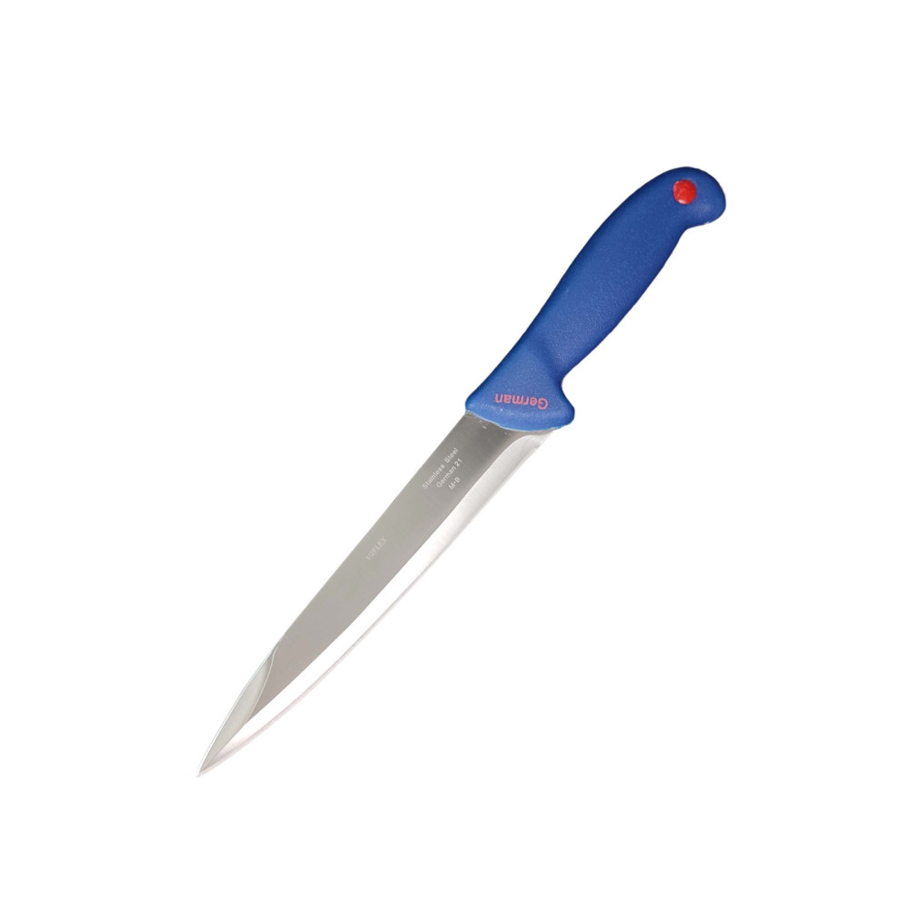 Cutit de macelarie cu lama dreapta semiflexibila, 21 cm, otel german, maner anti alunecare Albastru inchis, pentru injunghiat, Sdx Market�