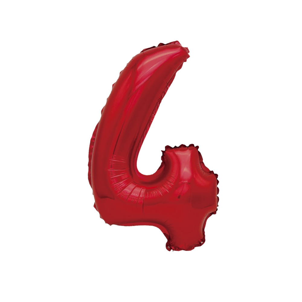 Balon din folie metalizata, Cifra 4, 100 cm, Rosu
