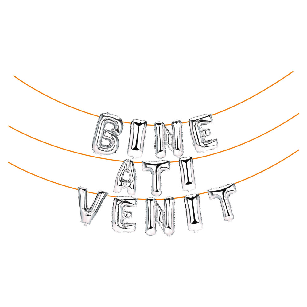 Baloane din folie metalizata argiuntiu, Mirific Party, "BINE ATI VENIT", 6 m x 45 cm, Silver