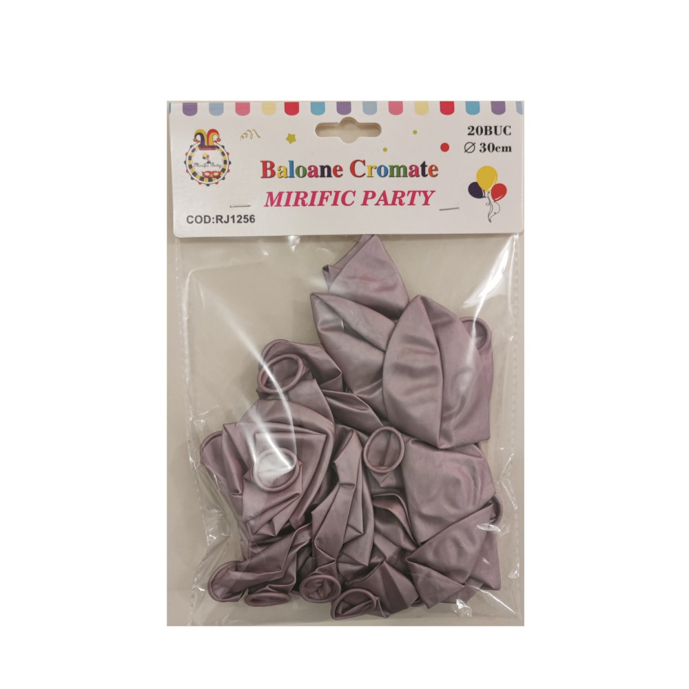 Set 20 Baloane latex, Mov deschis metalizat, 30 cm