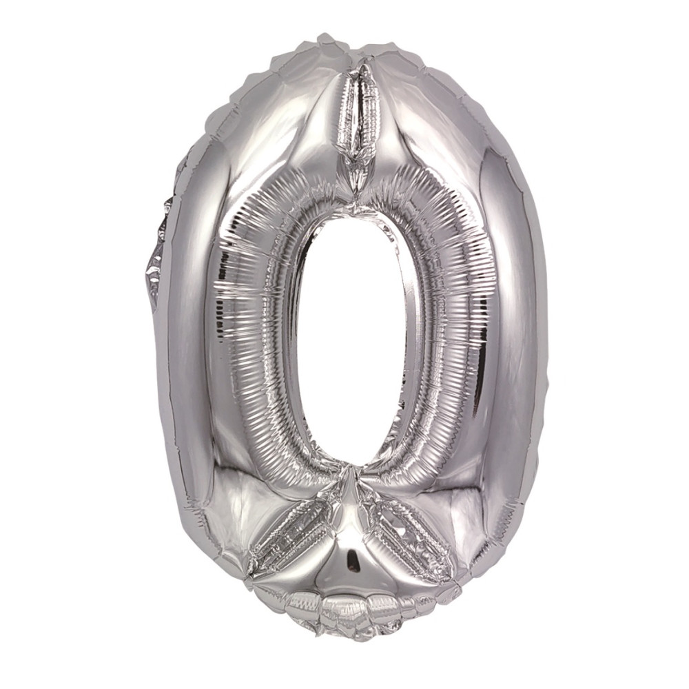 Balon din folie metalizata argintie, Cifra 0, 80 cm, Silver