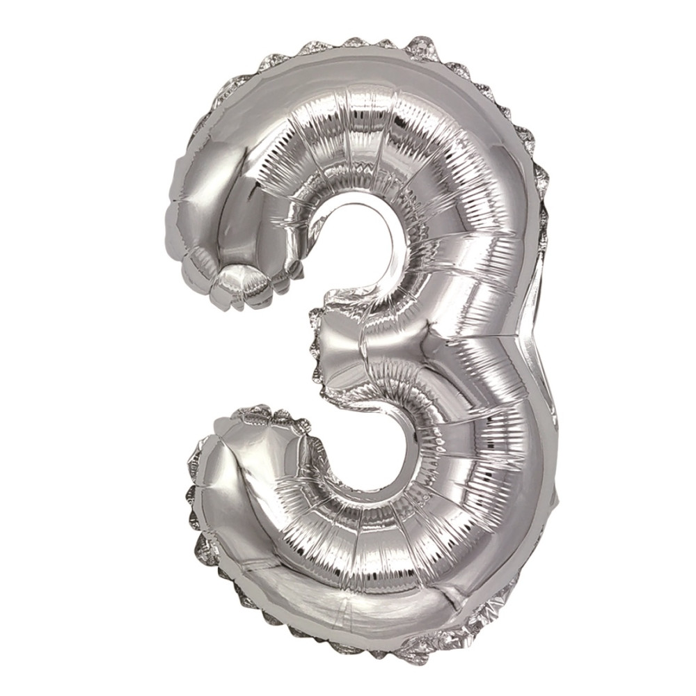 Balon din folie metalizata argintie, Cifra 3, 80 cm, Silver