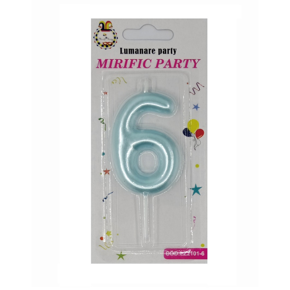 Lumanare tort, cifra 6, Albastru Turquoise