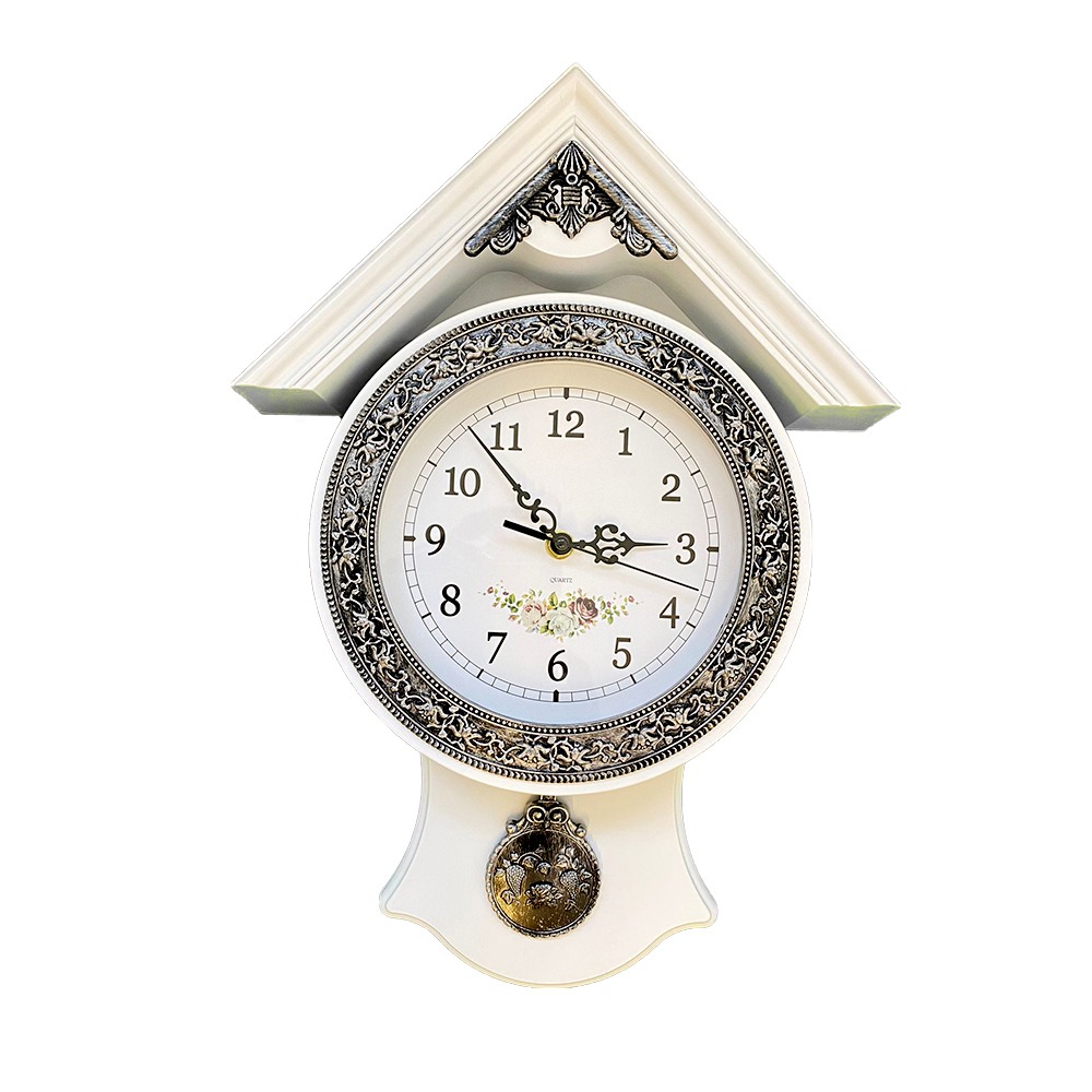 Ceas de perete cu pendula tip casuta, Alb Antichizat - Sdx Market�