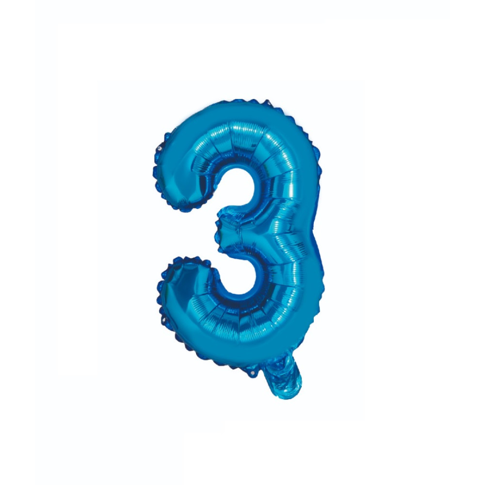 Balon din folie metalizata, Cifra 3, 100 cm, Albastru