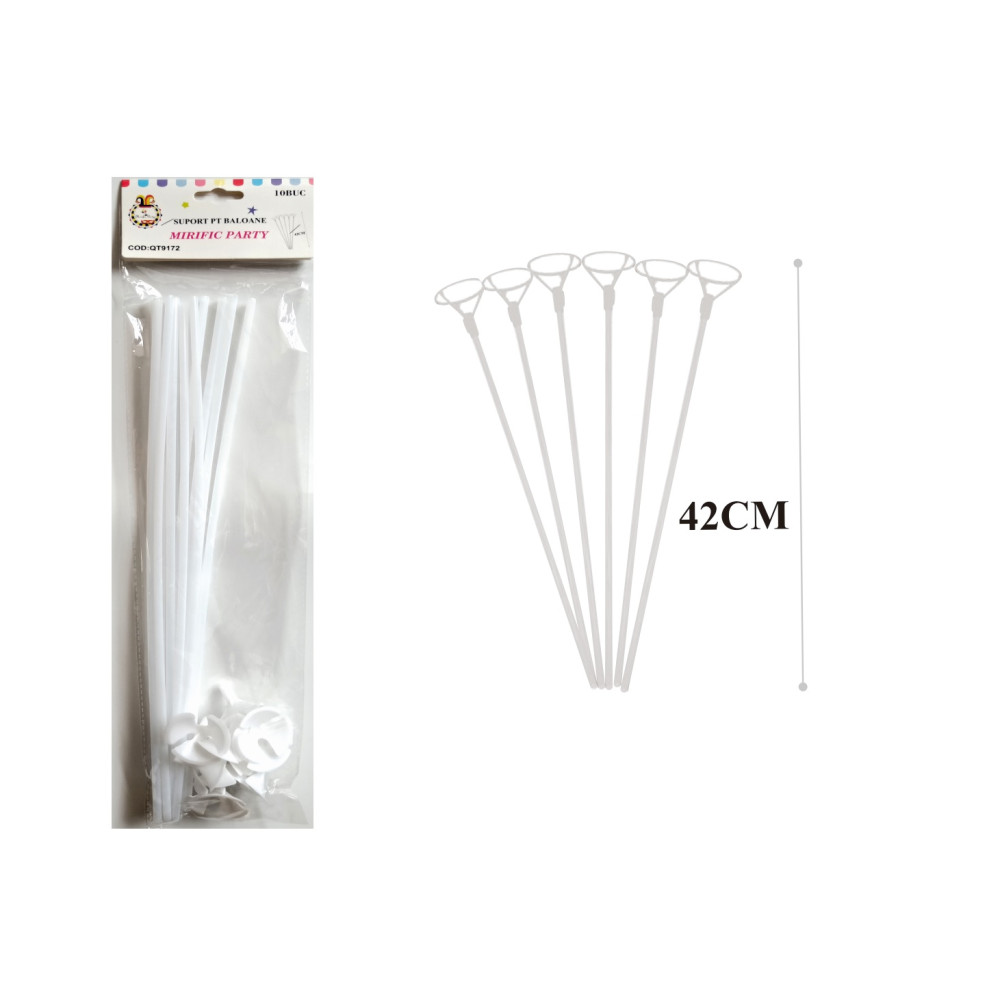 Set 10 bete Albe pentru baloane, tije 42 cm
