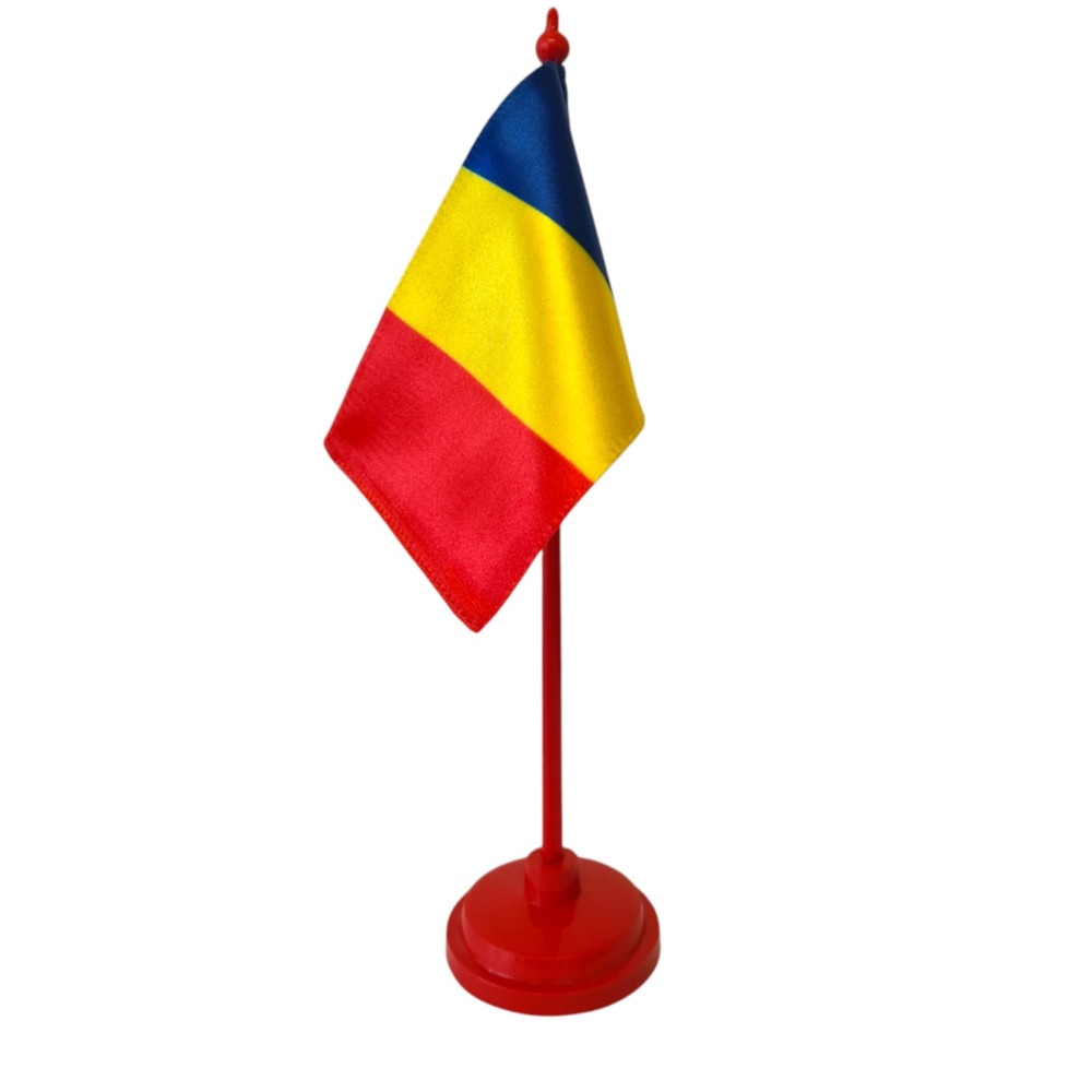 Steag tip drapel tricolor Romania, cu suport Galben de plastic, pentru birou