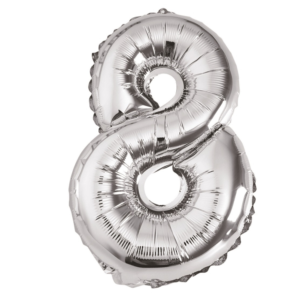 Balon din folie metalizata argintie, Mirific Party, Cifra 8, 80 cm, Silver