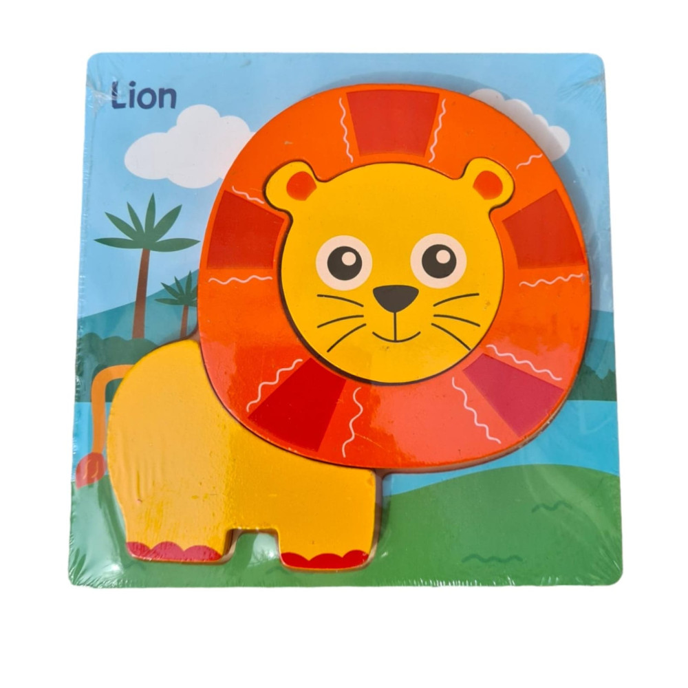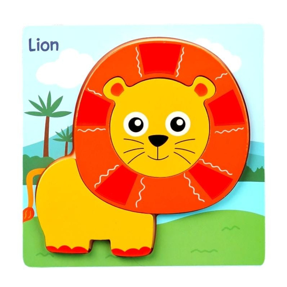 Puzzle cu 3 piese pentru bebelusi, Lemn, model Leu, 1-3 ani